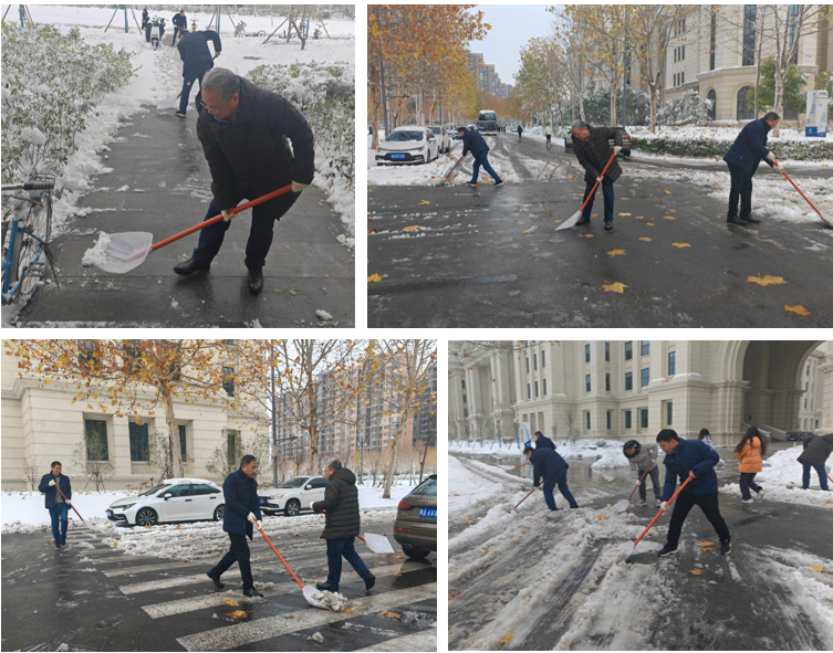本网讯(通讯员 郭朋)12月11日清晨,寒风刺骨,雪后的校园路面湿滑难行。为了保障师生的安全,减少因路滑引发的意外事故,院领导班子带动学院师生迅速行动,带头铲雪、清路,针对学院教学区、实验室等重点区域的积雪进行了全面清理。