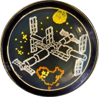 青年教师邵毅贞博士也参与了指导工作,两位教师积极引导学生参与专业技能竞赛,为他们提供创作环境并提出指导意见。此前,由两位教师共同指导的本科生团队也在河南省第三届大学生微生物培养皿艺术设计大赛中斩获佳绩。王鑫磊与王剑、赵珞、段依琳合作创作的作品《擎天揽明月,天宫汇神州》和《光影相约,青春不散》分别荣获河南省一等奖和三等奖,这两幅作品充分展现了他们对微生物专业知识的实践应用。前者以中国空间站为设计主题,彰显了我国航天事业的卓越成就,突显了中华人民勇于探索、不畏艰难的民族精神;后者则以樱花动漫