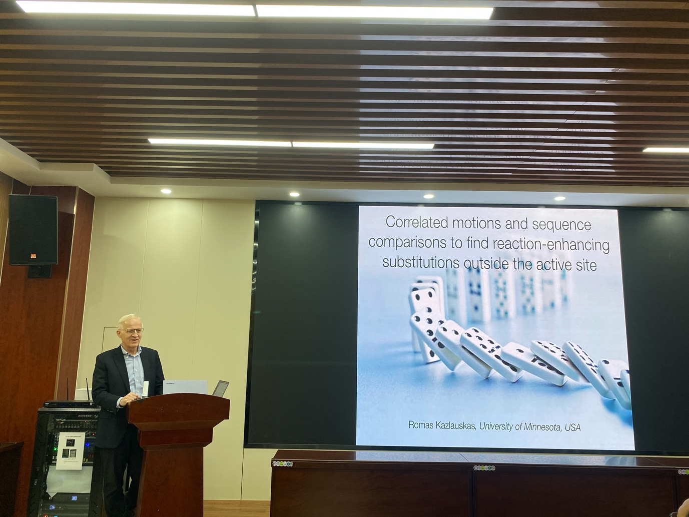 Kazlauskas教授以“Correlated motions and sequence comparisons to find reaction-enhancing substitutions outside the active site”为题,介绍了蛋白质工程提高酶催化活力的新技术,重点介绍了利用残基运动相关性以提高酶分子催化活力的新技术,并以提高羟腈裂解酶催化酯水解反应活性为例,展示了该技术在酶分子改造中的应用潜力,为建立高效生物合成路径中所需的优异酶分子提供保障。