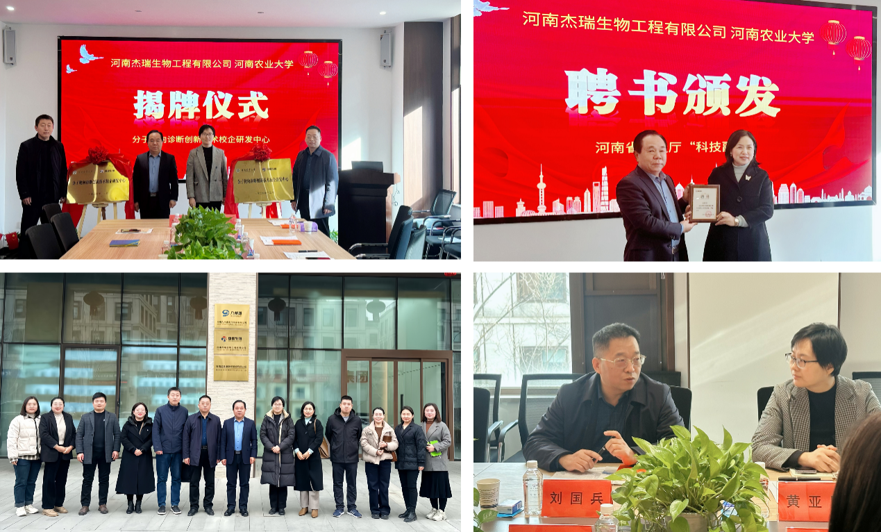 与河南杰瑞生物工程有限公司共建分子靶向诊断创新技术校企研发中心揭牌仪式在杰瑞公司会议室举行。郑州航空港区科技工信局副局长黄亚囡,河南杰瑞生物董事长段文杰、总经理韩萌萌,樱花动漫