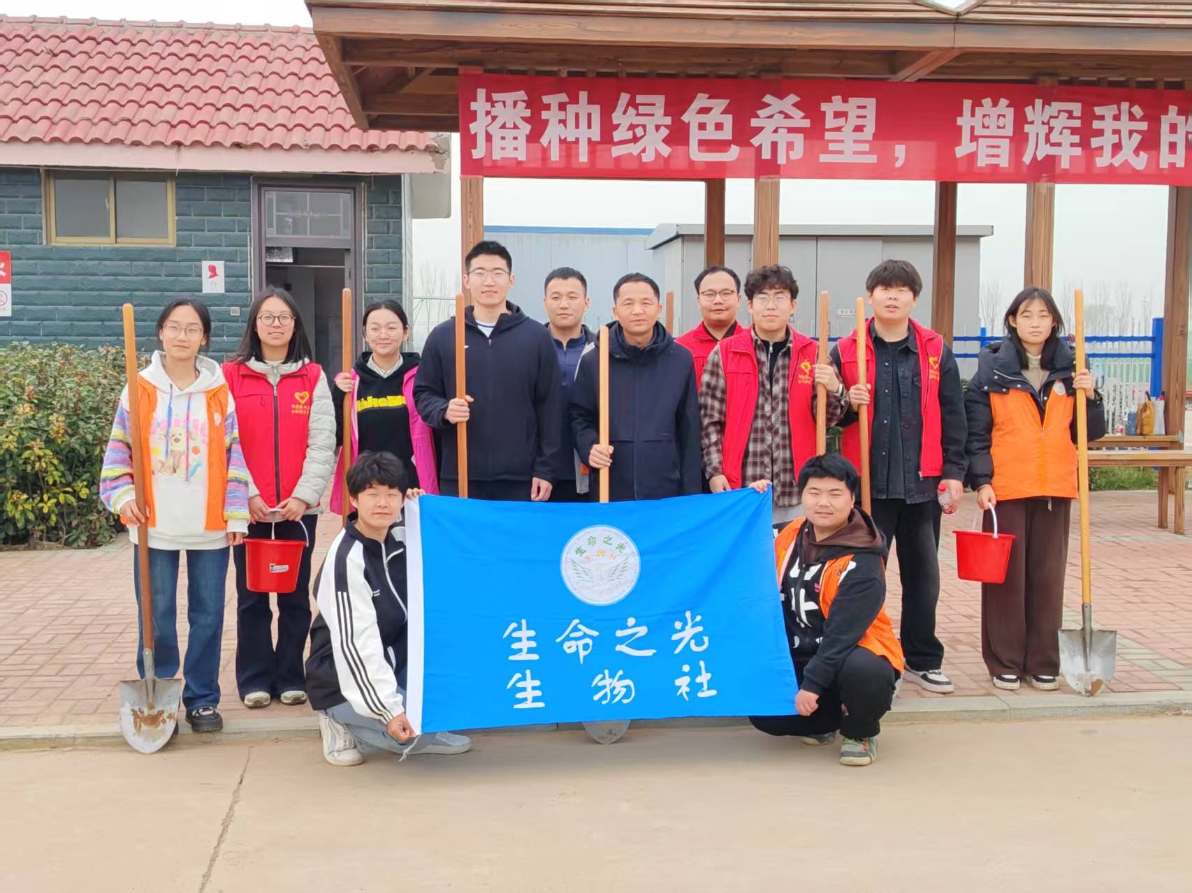 原阳基地开展了2025年义务植树活动。院党委书记刘国兵,副院长张会勇、赵华新,以及学院相关教师代表、各本科生、研究生党支部党员、生命之光生物社社员参加植树活动。